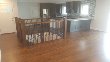 Goog example of whole floor remodeling: patching hardwood floor after wall removing, new stairs and relings installation, new vents.